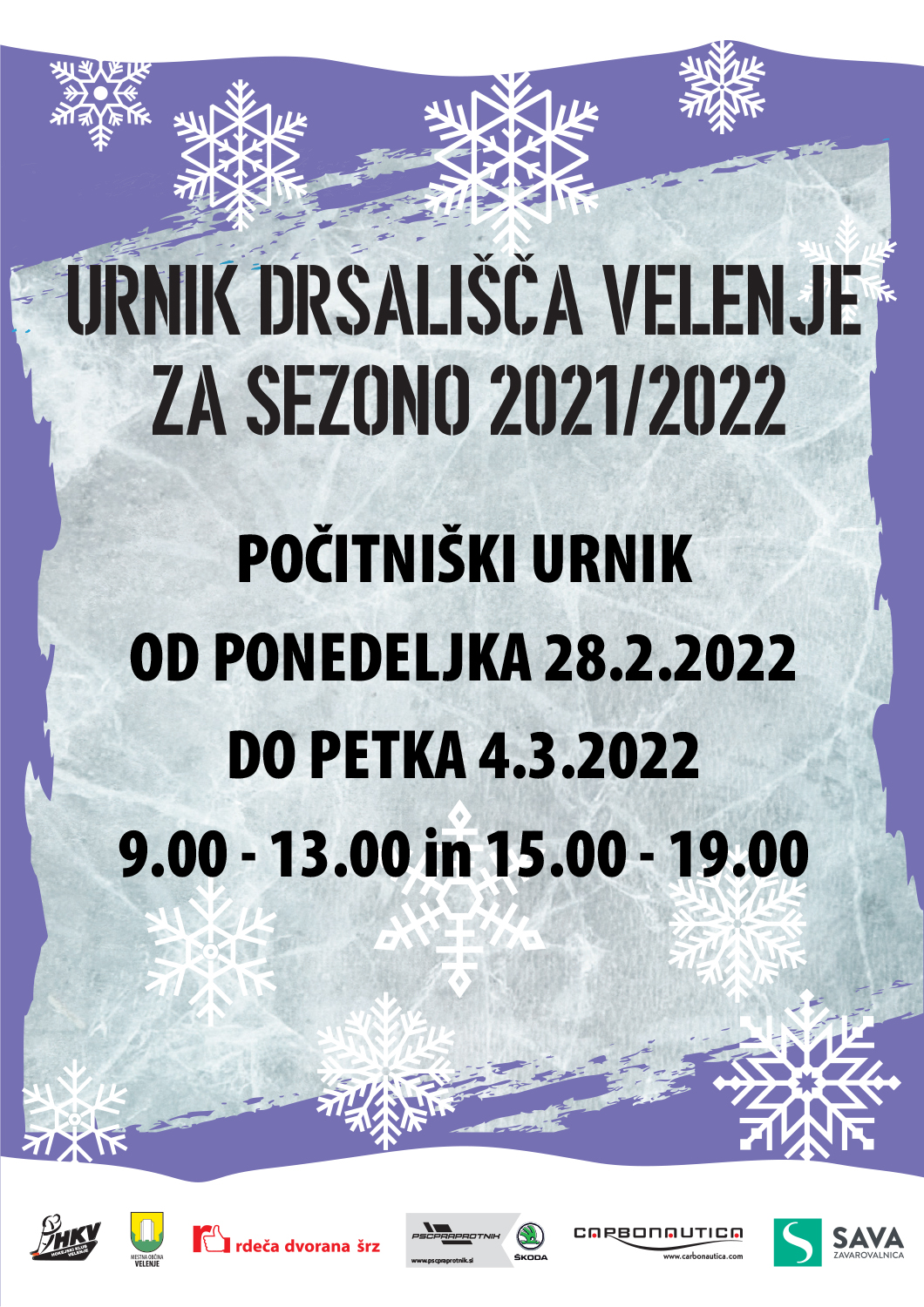 Počitniški urnik Drsališča Velenje Počitniški urnik Drsališča Velenje 22. 2. 2022 hokej Od ponedeljka, 28. 2. do petka, 4. 3. 2022 velja počitniški urnik Drsališča Velenje. 22. 2. 2022 Categories:novice 2 Likes