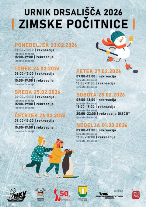 Od ponedeljka, 23. 2. do nedelje, 1. 3. 2026 velja počitniški urnik Drsališča Velenje. Od ponedeljka, 23. 2. do petka,…